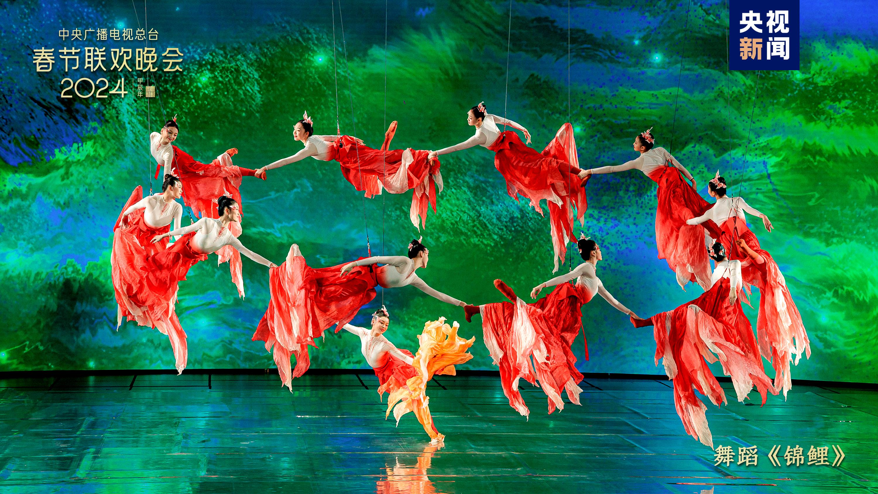 五彩纹样灿若云霞,绘出锦绣中华。中国传统纹样创演秀《年锦》选取汉、唐、宋、明四个朝代富有代表性的纹样,通过歌曲+虚拟合成技术,织出一幅跨越千载的纹样变迁图卷。刘涛、刘诗诗、李沁、关晓彤身着传统服饰,图案繁盛、细节有序的华服之美隐藏着河清海晏、繁荣昌盛的美好祝福。舞蹈《锦鲤》融合AI、XR等技术,舞者以飞天之姿化身水中锦鲤,点波流金,焕活舞台上的一池春水,令人惊艳。