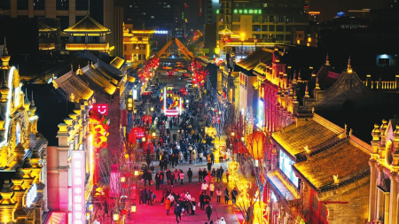 2月11日晚,太原市钟楼街灯火通明、人头攒动,一派喜气洋洋的节日气氛。春节到来,省城街头流光溢彩、彩灯高悬、夜景如画,散发着浓浓年味。人们携亲伴友纷纷走上街头,感受浓郁的节日氛围。
