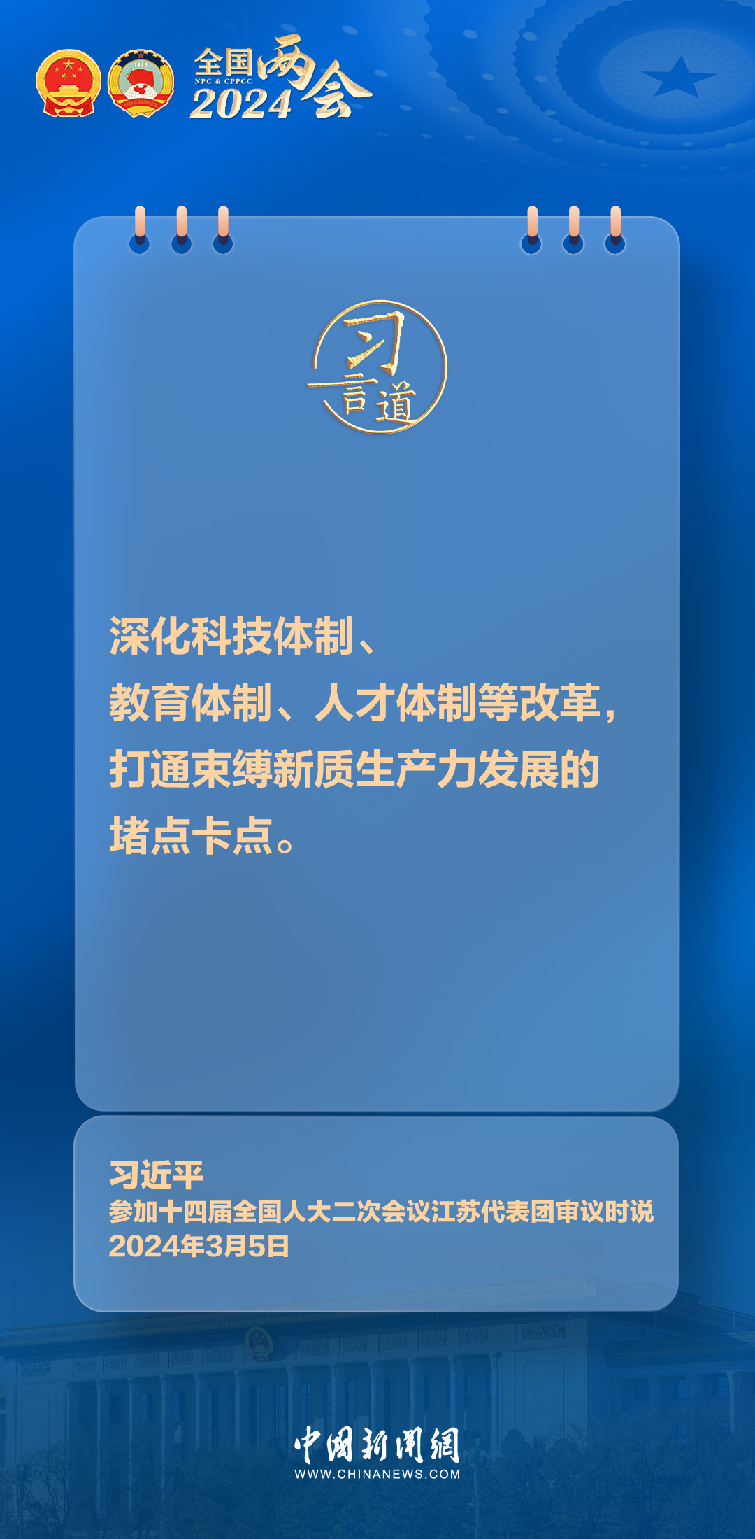 中共中央总书记、国家主席、中央军委主席习近平5日下午参加他所在的十四届全国人大二次会议江苏代表团审议。习近平指出——