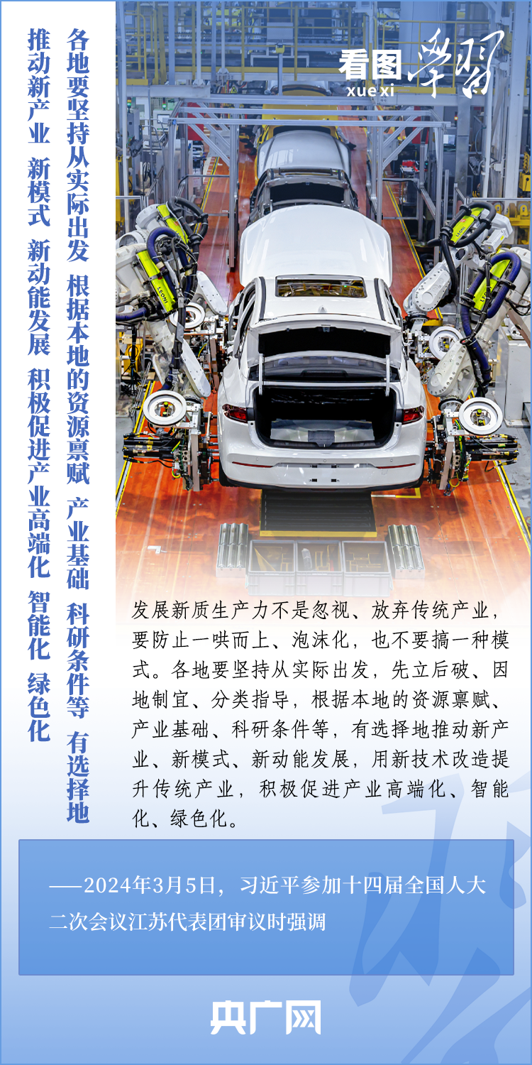 3月5日,十四届全国人大二次会议正式开幕。5日下午,习近平总书记参加他所在的江苏代表团审议时强调,要牢牢把握高质量发展这个首要任务,因地制宜发展新质生产力。发展新质生产力不是忽视、放弃传统产业,要防止一哄而上、泡沫化,也不要搞一种模式。一起来学习!