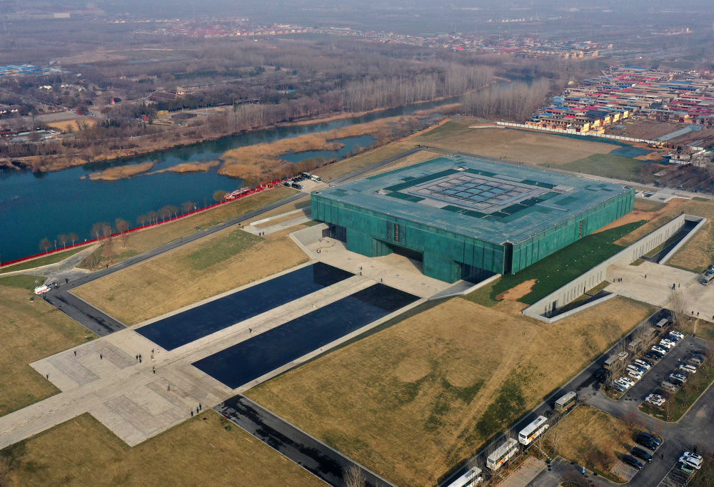 这是2024年2月26日拍摄的位于河南省安阳市的殷墟博物馆新馆(无人机照片)。新华社记者 李安 摄