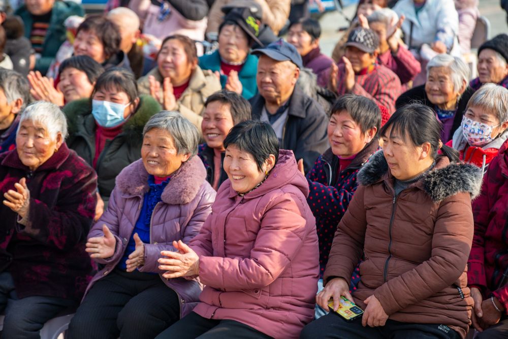 2024年2月11日,江苏省海安市胡集街道园庄村村民在“村晚”上欣赏文艺节目。新华社发(翟慧勇摄)
