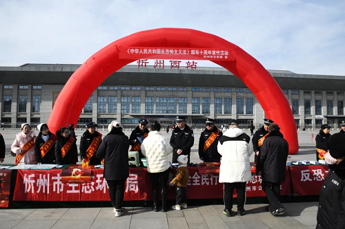 《中华人民共和国反恐怖主义法》颁布实施十周年之际,为深入贯彻总体国家安全观,引导广大人民群众增强反恐意识、强化反恐责任、践行反恐义务,筑牢全社会反恐安全防线,12月26日上午,忻州市反恐怖领导小组在忻州西站东广场开展“全民反恐 共创平安”主题宣传活动。