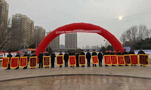 仪式结束后,原平市公安局在广场上开展了集中宣传活动,通过发宣传资料、参观展板等方式,向群众讲解了盗窃、诈骗等违法犯罪的常见作案方式,提高群众的防范意识;民辅警还讲解了春节期间燃放烟花爆竹的政策,如何消除安全隐患、避免意外事故等知识,引导群众要合法合规购买、储存、燃放烟花爆竹;同时,还向群众宣传了道路交通安全知识,提高群众安全意识,筑牢安全防线。