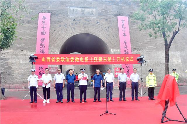 8月18日上午,山西省委政法委微电影《狂飙末路》在忻州古城南门隆重举行开机仪式。忻州市委副书记、市长、政法委书记朱晓东致欢迎辞,省委政法委副书记邓彩彪出席仪式并讲话,忻州市政府党组成员、市公安局局长杨梅喜主持仪式,剧组主演洪卫作代表发言,山西省委政法委、忻州市委政法委、忻州市公安局有关领导及剧组主创人员一同参与并共同见证了开机仪式。