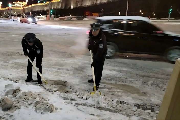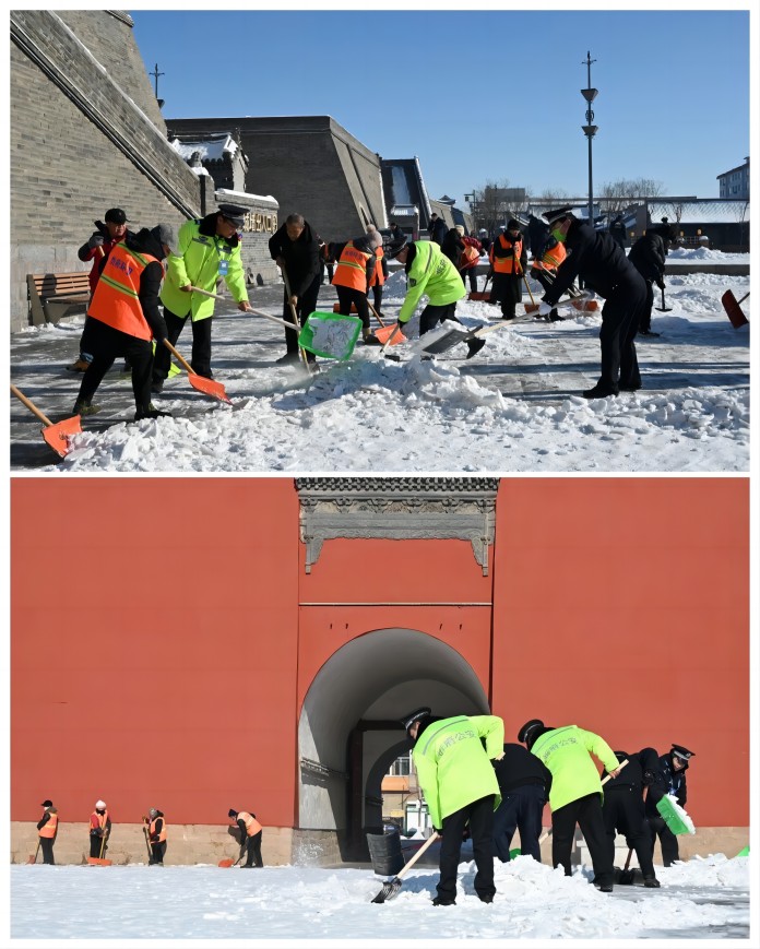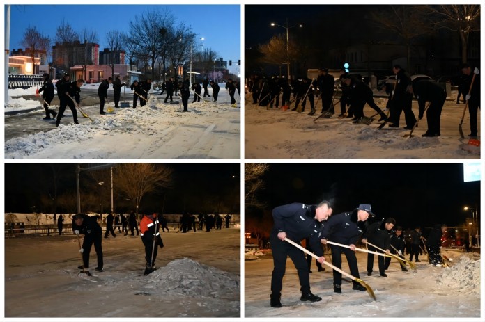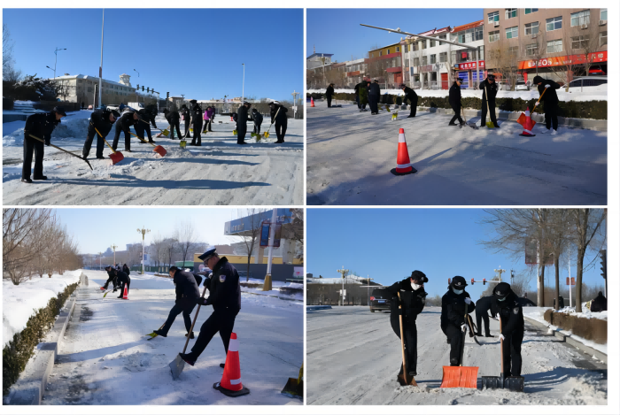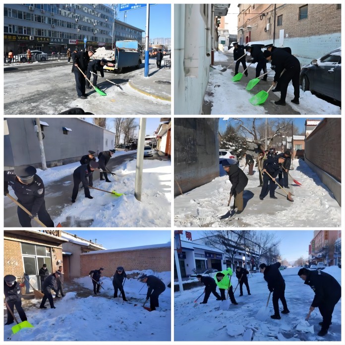 12月16日至17日,分局150余名民辅警深入到机关周边道路、古城景区广场及辖区主要街道坡度较大路段和车辆转弯路口参与路面积雪清除、提示引导等工作;各派出所纷纷出动警力,投入到辖区积雪清扫保畅通工作中,努力为辖区群众营造安全有序的出行环境。