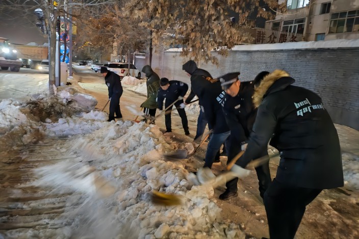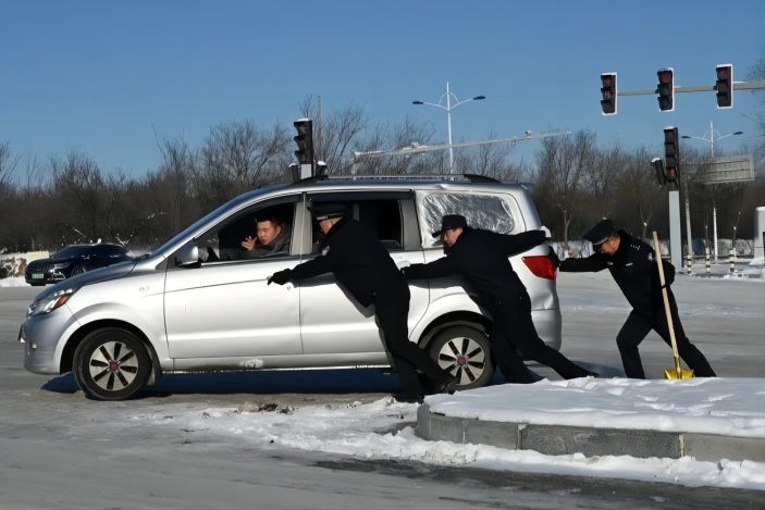 连日来强降雪降温天气,导致辖区道路积雪结冰,给群众出行带来安全隐患。为保障群众安全出行,忻州市公安局忻府分局全面启动应急响应机制和极端天气应急预案,全体民辅警在岗在位开展除雪清冰、救援救助、服务保障等工作。