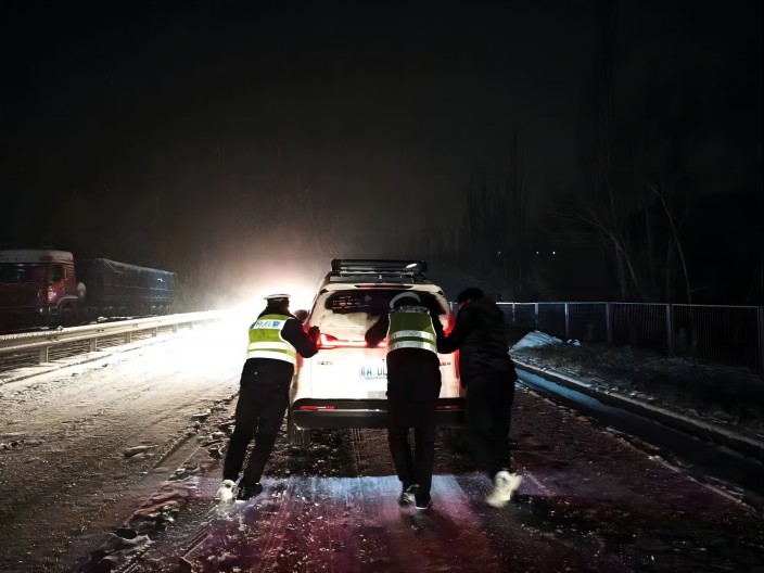 2023年12月10日忻州市迎来了入冬以来第一场降雪,降雪导致道路湿滑,给群众出行带来不便,同时也带来了极大的道路交通安全隐患。为全力确保雪天道路交通安全,忻州公安交警以雪为令,立即启动恶劣天气道路交通管理预案,全面开展雪天道路交通安全管理工作。