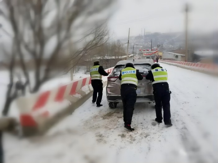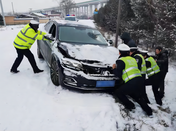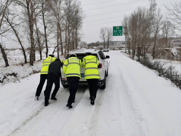 ▲偏关、繁峙交警救援雪地抛锚车辆