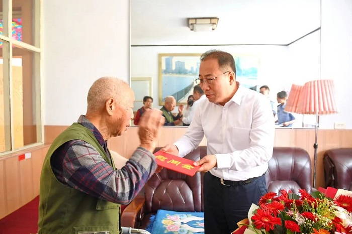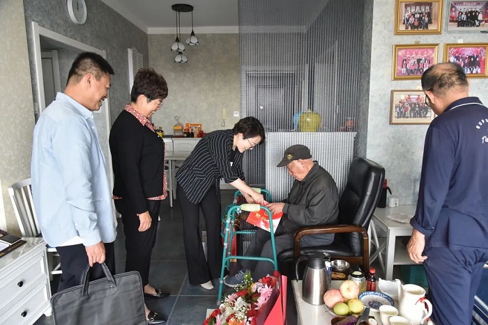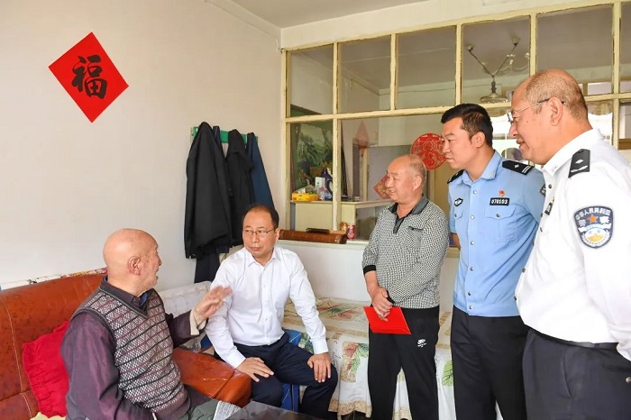 天朗气清秋风爽,年年岁岁又重阳。为弘扬尊老、敬老、助老的中华传统美德,表达对离退休老干部的关爱之情,在重阳节来临之际,副市长、市公安局党委书记、局长史红波等局党委班子成员分别走访慰问市公安局离休老干部,向他们送去节日的问候和诚挚的祝福。