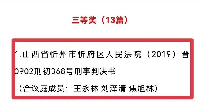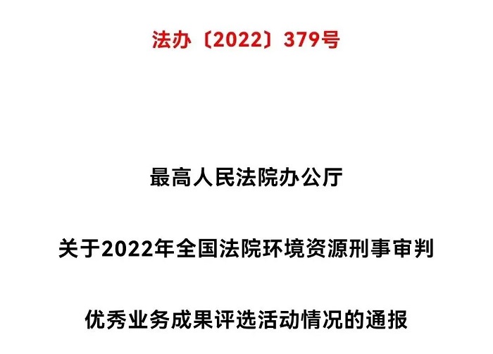 近日,最高人民法院办公厅发布了关于2022年全国法院环境资源刑事审判优秀业务成果评选活动情况的通报,忻府区法院报送的山西省忻州市忻府区人民法院(2019)晋0902刑初368号刑事判决书(合议庭成员:王永林 刘泽清 焦旭林)荣获2022年全国法院环境资源刑事审判优秀业务成果(裁判文书类)三等奖!山西唯一!