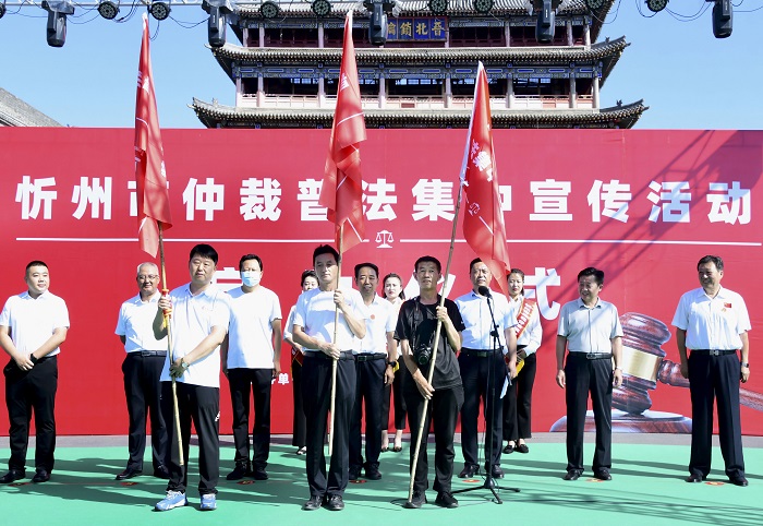 为深入学习贯彻习近平法治思想,落实我省“八五”普法工作部署和知识产权保护工作要求,加强仲裁法律制度普及、宣传知识产权仲裁知识、宣传仲裁典型案例,不断提升仲裁社会知晓度,充分发挥仲裁在化解民商事和知识产权纠纷中的作用,按照《山西省司法厅关于开展仲裁普法集中宣传活动的通知》精神,8月16日上午,忻州市司法局、忻州仲裁委员会联合在忻州古城举办忻州市开展“仲裁普法集中宣传活动”启动仪式。各类企业代表、社会各界群众代表、拟任仲裁员代表共150余人参加了启动仪式。现场还开展了仲裁制度咨询、发放宣传资料、公开仲裁申请、受理、办理等工作流程和规章制度等活动内容。