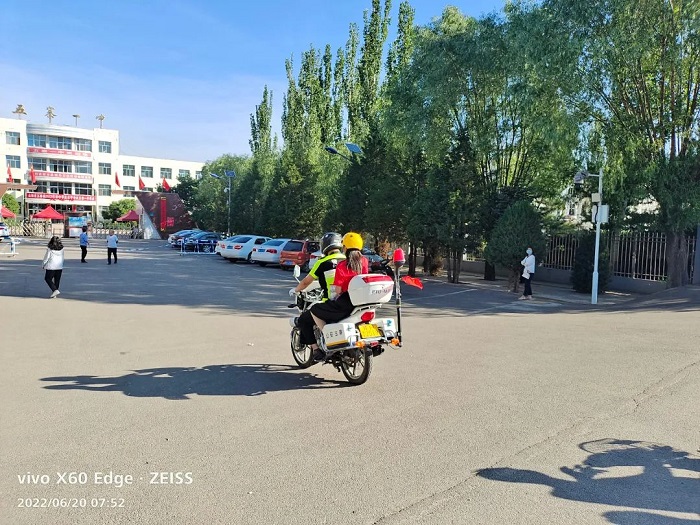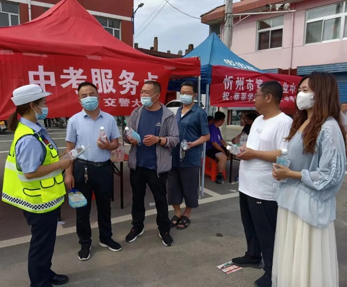 忻州五中考生因父亲生病做手术, 无人接送, 五中考点一大队执勤民警接到求助后, 安全将孩子送回家中。