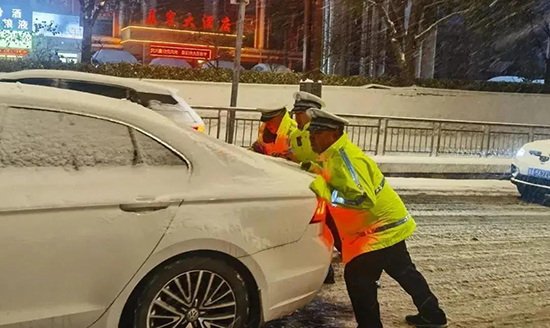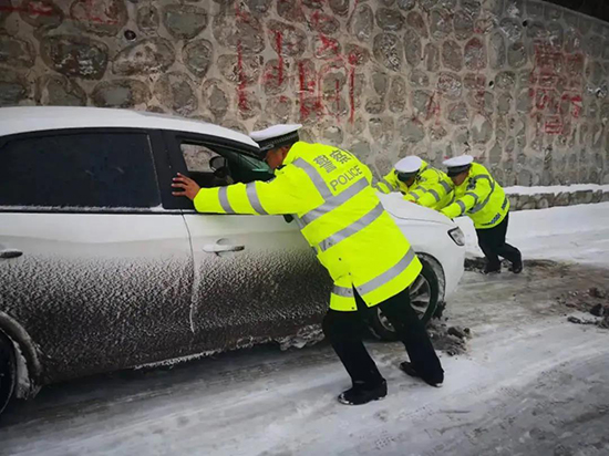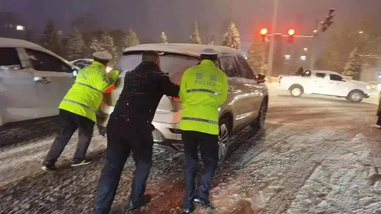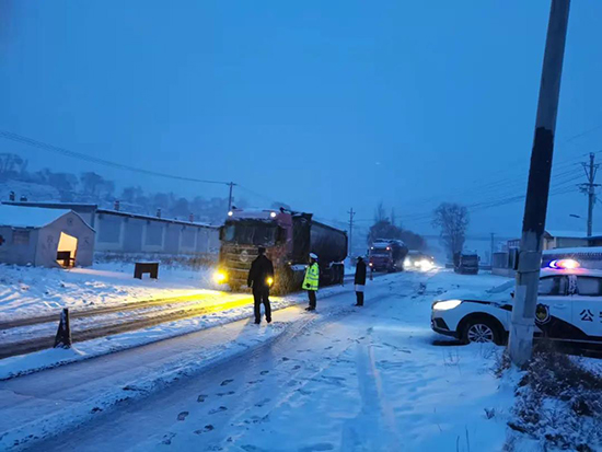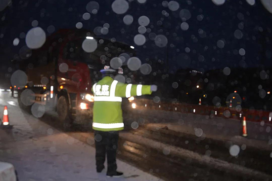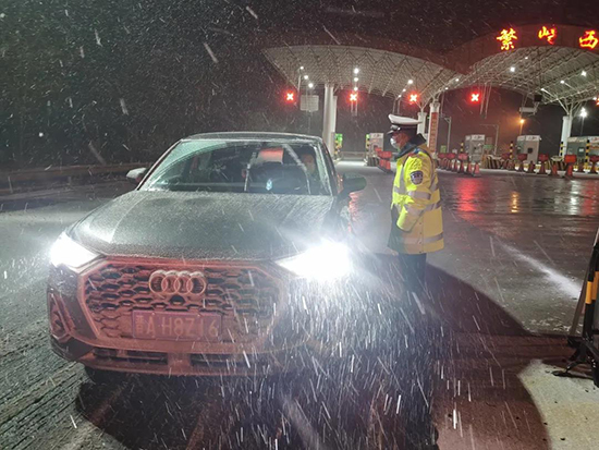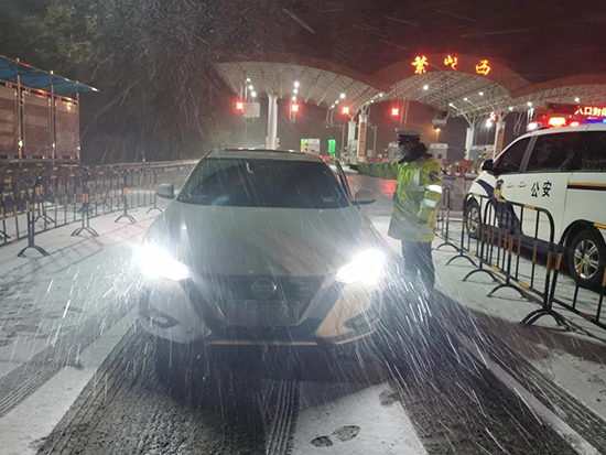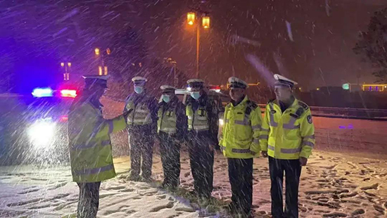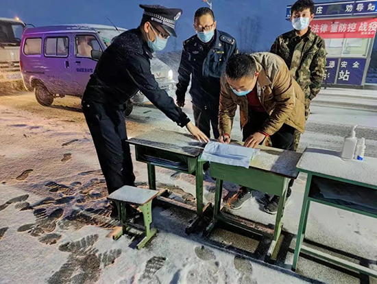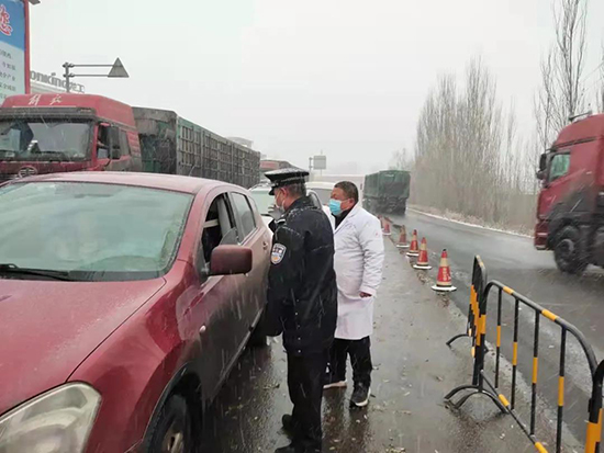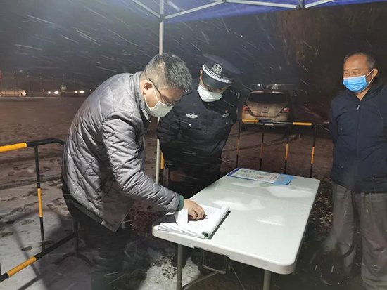 同时,在疫情防控健康监测卡口的执勤民警、辅警顶风冒雪、不畏严寒,依然坚守在自己的岗位上,一刻也不松懈地按照疫情防控规定对过往车辆及人员进行防疫核查工作,浴雪奋战在疫情防控一线。
