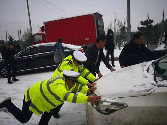 11月6日至7日,忻州市迎来今冬第一次大范围降雪,部分路段积雪结冰,安全隐患增多,给道路通行带来极大的影响。为保障恶劣天气下的交通安全,忻州公安交警以雪为令,迅速反应,全警上路,坚守一线,果断采取各种有效措施,冒严寒、踏雪水,积极迎战冰雪恶劣天气,确保全市道路安全畅通。