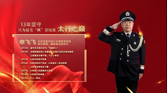 全国特级优秀人民警察、全国公安机关爱民模范,壶关县公安局局长助理、鹅屋派出所所长 申飞飞