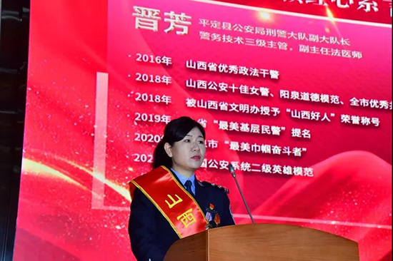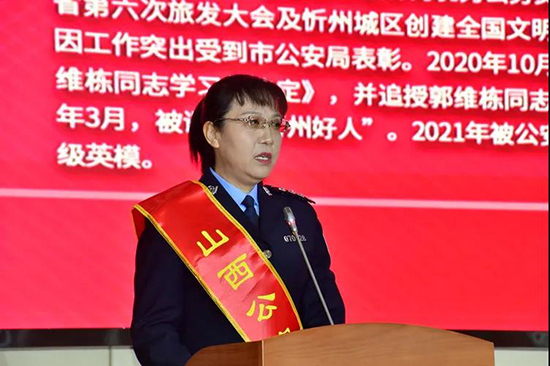 全国三八红旗手、忻州市公安局交警支队安全科科长张晋兰讲述全国公安二级英模郭维栋事迹
