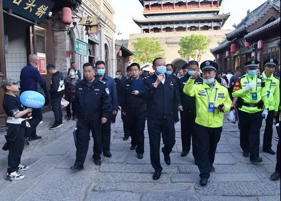 5月1日下午,忻州市人民政府副市长、市公安局局长袁小波同志深入我市忻州古城景区督导检查“五一”安保工作。市政府督查专员边琳,市局警令部、交警、治安、督察、巡特警、信通、警犬基地负责人参加督导检查。