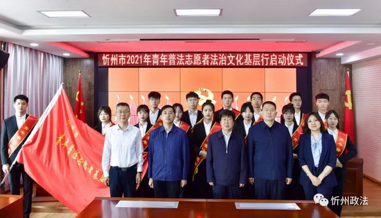按照中国法学会、司法部、共青团中央以及省法学会、省司法厅、共青团山西省委的统一部署,忻州市法学会、忻州市司法局、共青团忻州市委在5月19日上午,共同举行了忻州市2021年“青年普法志愿者法治文化基层行”活动启动仪式。