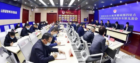 山西省政法队伍教育整顿第四驻点指导组司法行政指导专班成员刘艳、牛凯宇,忻州市纪委监委驻市委政法委机关纪检监察组组长周越宏等出席。