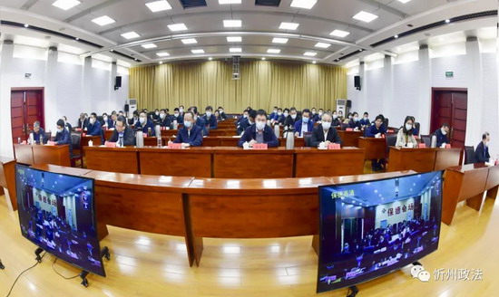 会议以视频形式召开。省政法队伍教育整顿第四驻点指导组相关人员,市政法队伍教育整顿领导小组组长、常务副组长、副组长、全体成员及办公室主任、副主任、各专项组组长在主会场参加。各县(市、区)设分会场。摄影:张未平文字:乔龙飞(忻州日报)