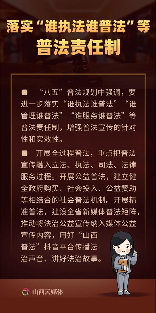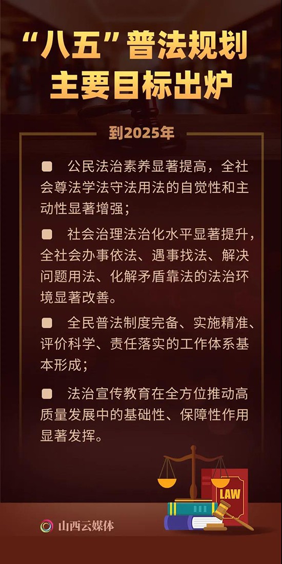近日,山西省委、省政府转发了《省委宣传部、省司法厅关于开展法治宣传教育的第八个五年规划(2021—2025年)》,省第十三届人大常委会第三十二次会议通过了《山西省人民代表大会常务委员会关于开展第八个五年法治宣传教育的决议》,标志着我省“八五”普法正式启动。