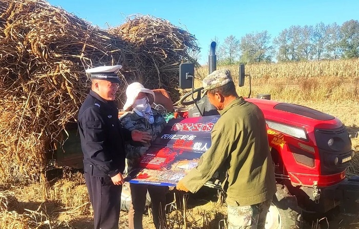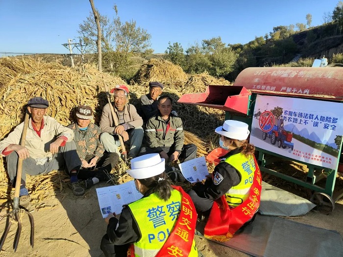 ▲五台公安交警针对秋收期间农用车违法载人行为突出,积极组织民警走进田间地头开展交通安全宣传活动。