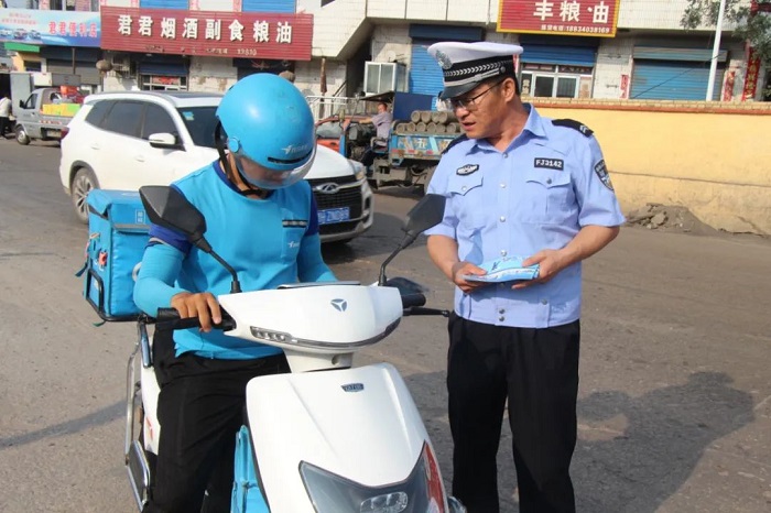 “五一”期间,保德交警在节日期间坚守岗位,加强对路面管控,同时,在辖区内为过往交通参与者普及交通安全知识、发放交通安全宣传资料,向群众讲解正确佩戴头盔的方法及佩戴头盔的重要性,提高群众交通安全意识。