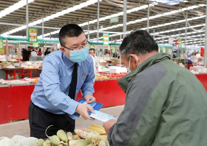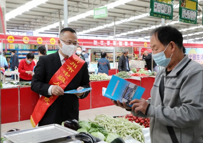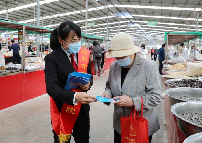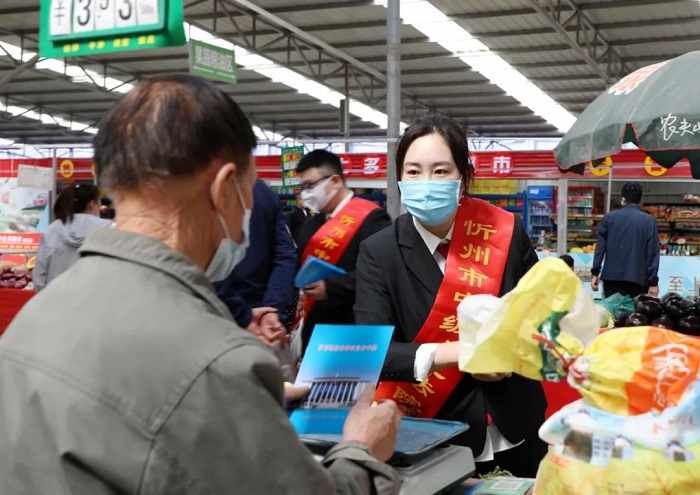 为进一步提高老年群体的识骗能力和反诈意识,有效预防养老诈骗违法犯罪,5月25日上午,忻州中院与忻州市检察院派出干警来到人流量密集的忻府区公园东街便民市场,联合开展“坚决打击养老诈骗犯罪,铁腕守护人民财产安全”主题法律宣传活动。