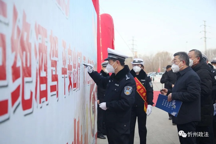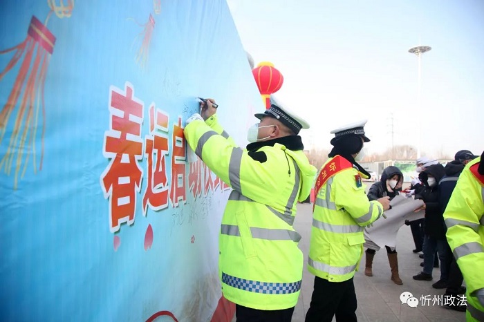 1月7日是全国春运工作启动日。当日上午10时,忻州市客运中心广场上人头攒动、鼓乐喧天。忻州市公安局交警支队联合市委宣传部、高速交警五支队、市工信局、市交通运输局、市教育局、忻州汽车运输有限公司在这里举行2023年春运道路交通安全保卫启动仪式,暨“拒绝酒驾、平安出行”万人签名活动,正式拉开2023年春运工作的序幕。