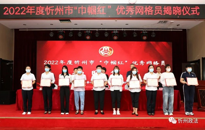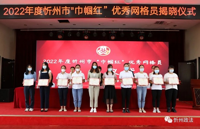 为贯彻落实全国、省、市市域社会治理现代化试点工作的精神要求和省委、市委抓党建促基层治理能力提升的决策部署,全面展示全市女性网格员队伍积极向上的精神风貌,进一步发挥妇女在社会治理中的独特作用,助力推动全市基层党建与社会治理融合发展,8月10日上午,市委政法委、市妇联联合举行2022年度忻州市“巾帼红”优秀网格员揭晓仪式。市委政法委政治部主任王文中宣读表彰决定,市妇联党组书记、主席邢雨花讲话,市妇联党组成员、副主席吴国兰、市妇联挂职副主席李微参加会议,市妇联党组成员、副主席崔晓君主持。