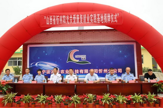 6月24日上午,山西省忻州阳光关爱康复就业实践基地揭牌仪式在忻州市忻府区北义井乡真檀村凌晨农业山西忻州分公司院内举行。