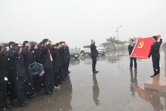在高君宇纪念馆,机关干警逐一参观了“立志报国”、“五四健将”和“上下求索”等十个篇章,了解了高君宇的生平事迹,尤其是他为“五四”运动,山西党、团组织做出的重大贡献,以及他矢志不渝、勇往直前的优秀品质。通过历史图片和实物展示,更全面系统地认知了高君宇同志,同时也深刻地接受了一场生动的革命教育和思想洗礼。随后,在革命先驱高君宇塑像前,市院党组书记、检察长周东曙同志与机关干警一起重温了入党誓词。面对鲜红的党旗,大家庄严宣誓,铮铮誓言余音伴随着飘舞的雪花久久未能散去。