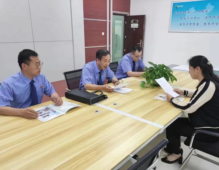 5月18日上午,忻府区人民检察院党组书记、检察长张陆翔深入忻州市华北通讯有限公司走访,在区工商联主席、公司负责人刘迎春的陪同下,实地参观了公司的营业、售后服务等场所,并在座谈中深入了解了公司的主要业务、经营现状及存在的困难和问题,倾听企业的司法需求。