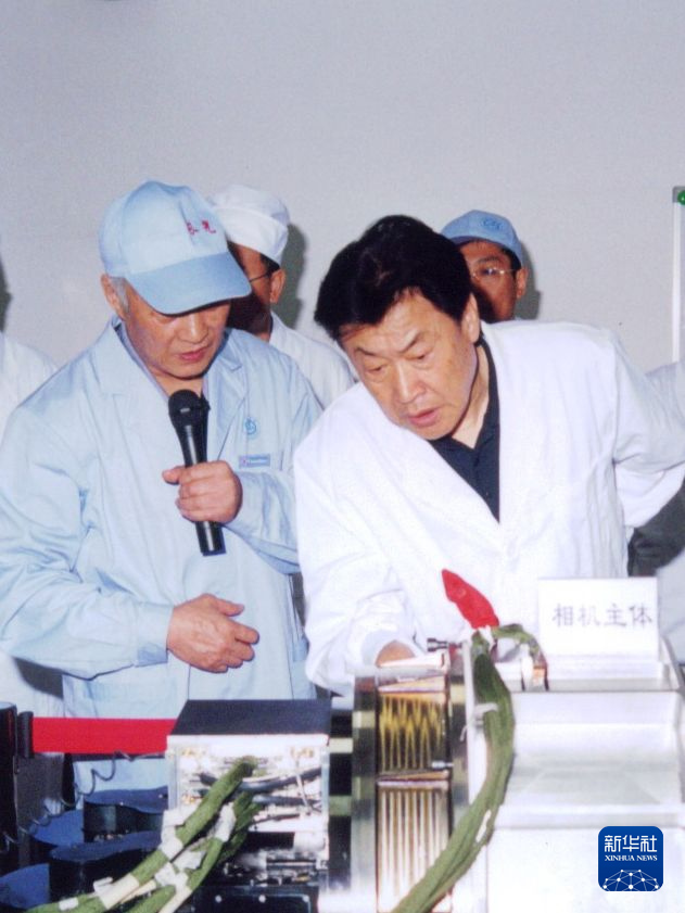 王永志(右二)深入载人航天工程研制一线。新华社发(资料照片)