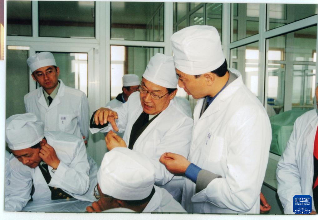 王永志(右)在现场检查工作。新华社发(资料照片)